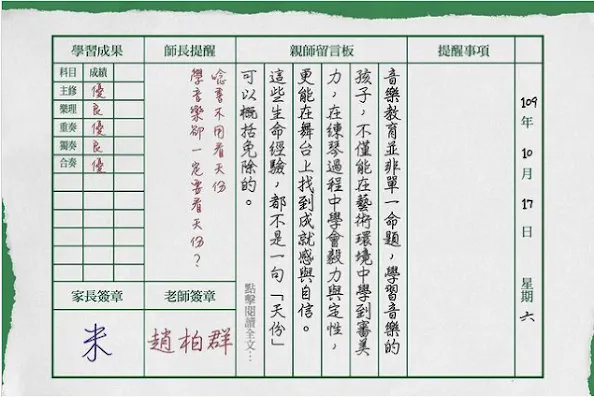 希望今天的「家庭聯絡簿」,